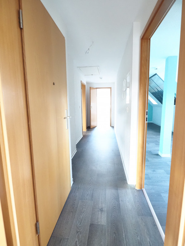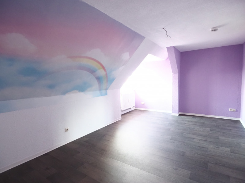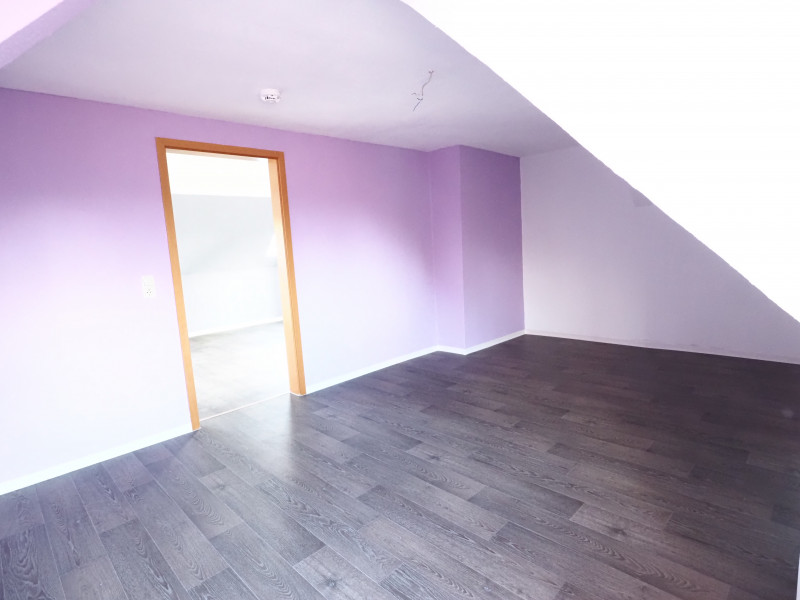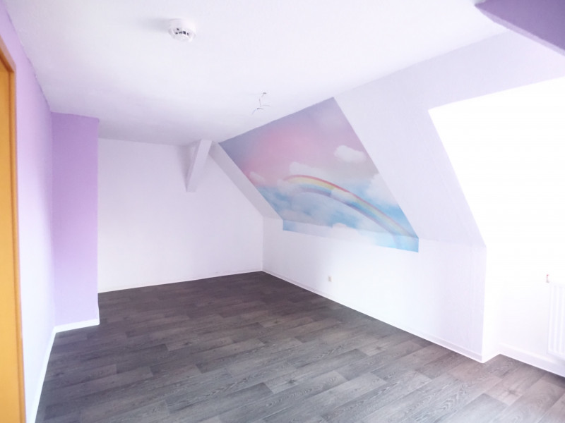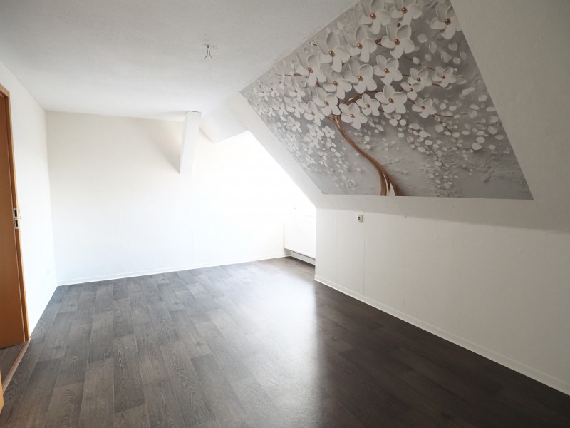 Diese charmante Dachgeschosswohnung besticht durch ihre idyllische Lage inmitten einer ruhigen ländlichen Umgebung und verbindet naturnahes Wohnen mit Stadtnähe Das Zentrum erreichen Sie in nur etwa 25 Gehminuten. Der individuelle Grundriss, charakteristische Dachschrägen sowie sichtbare Dachbalken verleihen der Wohnung eine besonders gemütliche und wohnliche Atmosphäre. Die drei Wohnräume, die Küche und der Flur sind mit einem modernen PVC-Bodenbelag in ansprechender Dielenoptik ausgestattet, während das Tageslichtbad vollständig gefliest ist und somit ein helles, freundliches Ambiente schafft. Ein separater Abstellraum sorgt für praktischen zusätzlichen Stauraum, und ein eigenes Kellerabteil rundet dieses attraktive Wohnangebot ab.