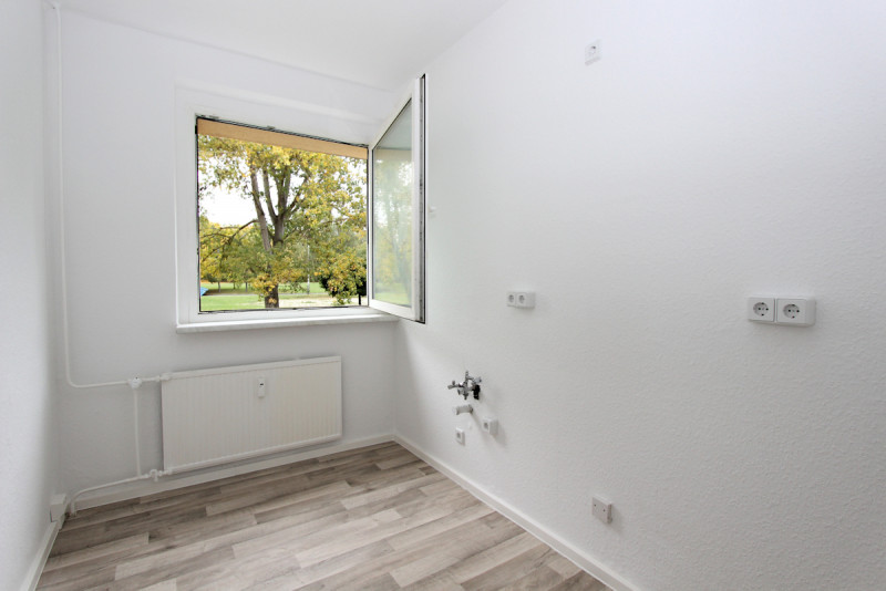 Diese frisch sanierte und sofort bezugsfertige 5-Raum-Wohnung mit Balkon liegt im 1. Obergeschoss und besticht durch ihre moderne Ausstattung. Neue weiße Innentüren sowie ein hochwertiger PVC-Belag in stilvoller Holzoptik verleihen den Räumen ein elegantes Ambiente. Das helle und modern geflieste Tageslicht-Wannenbad unterstreicht den zeitgemäßen Charakter der Wohnung. Der Zugang zum sonnigen Balkon erfolgt über das Wohnzimmer, was zusätzlichen Komfort bietet. Zur Wohnung gehört außerdem eine Bodenkammer sowie ein Kelleranteil. Ein gemeinschaftlicher, begrünter Wäscheplatz hinter dem Haus steht allen Mietern zur Verfügung. Die Pflege des Außenbereiches sowie der Winterdienst wird von einer Hausmeisterfirma ausgeführt.