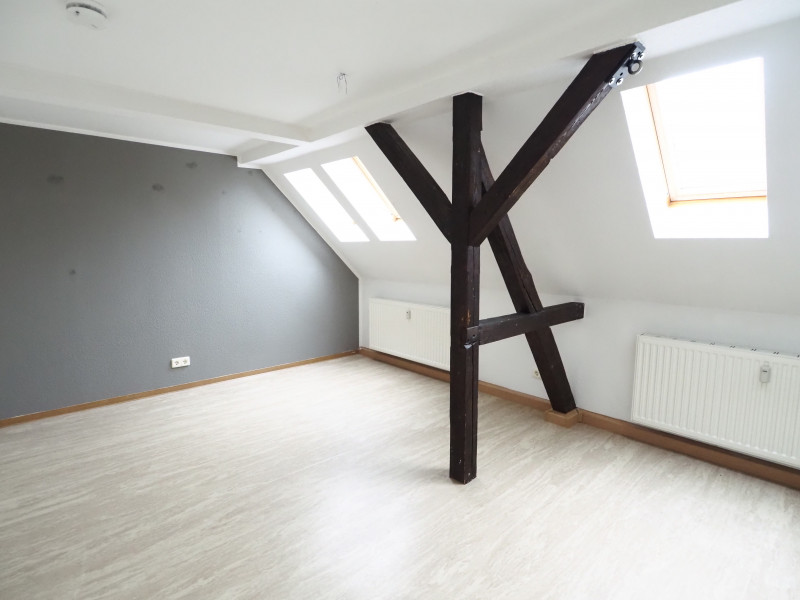 Die 71 m² große 3-Raum-Wohnung befindet sich im Dachgeschoss eines sanierten Mehrfamilienhauses. Die Küche bietet mit 13 m² genügend Platz zum Kochen und Essen. Das Wohnzimmer misst 24 m². Das geflieste Tageslichtbad ist mit einer Badewanne ausgestattet. Besonders charakteristisch ist das offene Gebälk sowie zahlreiche kleine Nischen, in denen sich gemütliche Leseecken oder clevere Arbeitsplätze für den PC einrichten lassen. Die drei einladenden Zimmer können Sie nach Ihrem persönlichen Geschmack einrichten. Weiterhin gibt es einen Garten, in dem es sich wunderbar vom Alltag erholen lässt. Im vorhandenen Kellerraum können Sie Ihre Habseligkeiten bequem aufbewahren.