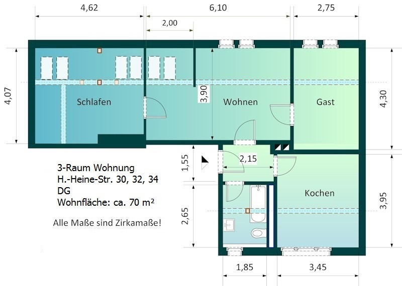 - Innenstadtnahe Lage mit ruhigem Umfeld
